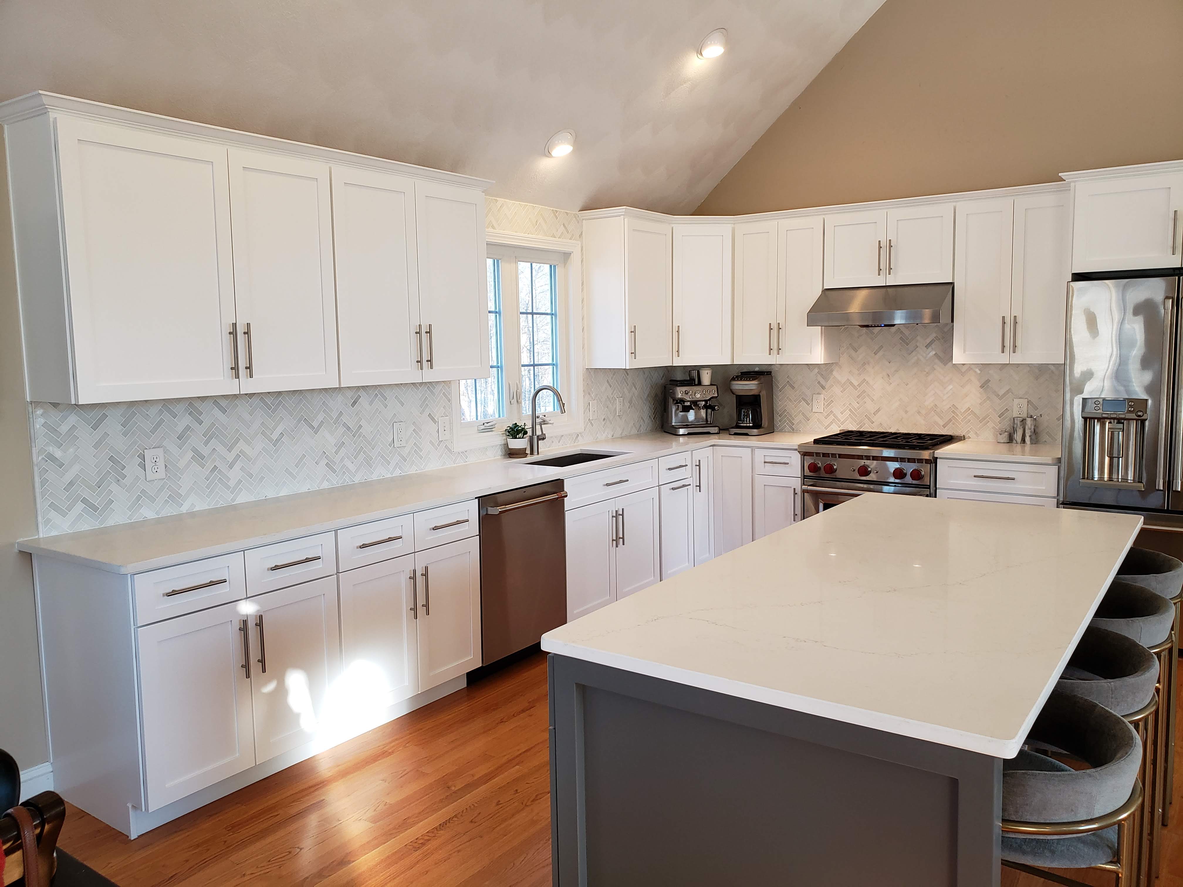 We really liked the layout and construction of our existing kitchen cabinets and island but they were beginning to show their age. Fully replacing them would have been wasteful but we wanted a more durable and uniform refinish than brushing or a combination of spraying and rolling would provide. After meeting Rory and seeing samples of what BF LLC could do with a full spray finish we decided on them.